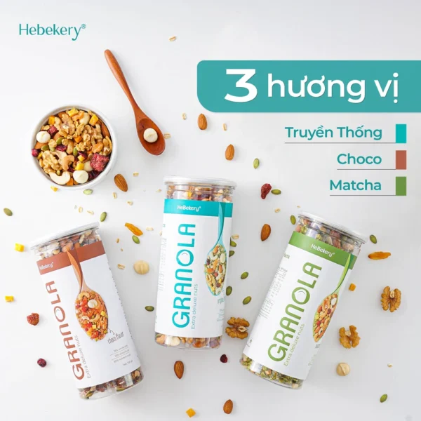 Granola Siêu Hạt 3 Vị Truyền Thống, Choco, Matcha – Ngũ Cốc Ăn Vặt Dinh Dưỡng Cao Cấp Ăn Kiêng Lành Mạnh by Hebekery